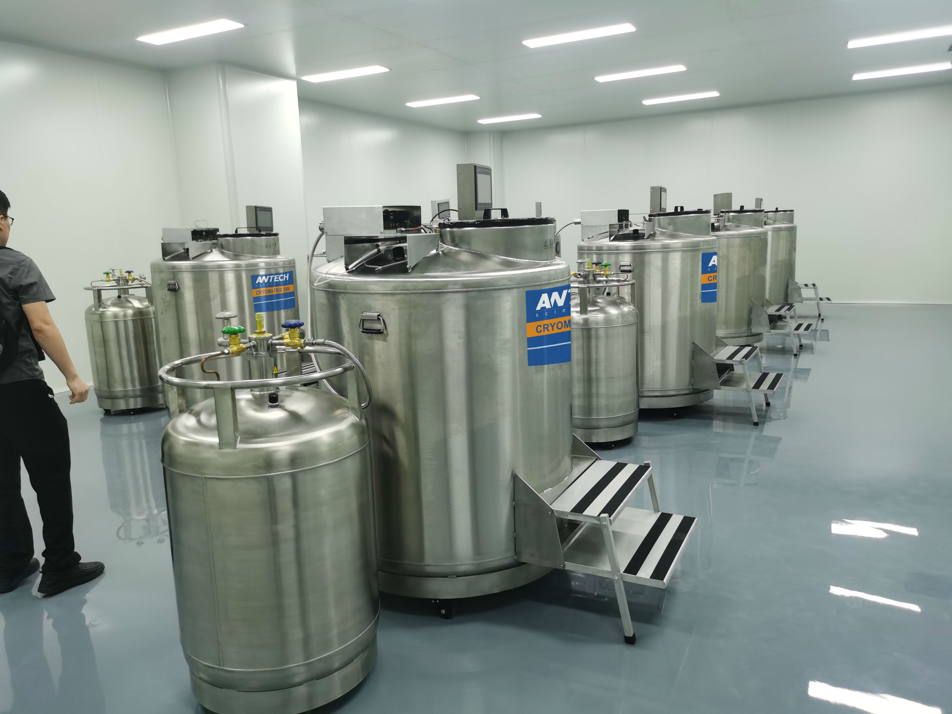 Antech Cryogenic freezer (liquid nitrogen container) for biobank vapor storage 2ml vials storage quantity is from 10K to 128K. 0.5ml, 5ml vials, and different blood bags 25ml,50ml, 200ml to 700ml can be also long time stored. The top temperature is lower than 180°C