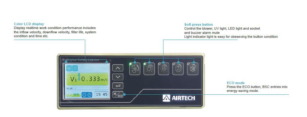 Intuitive interface delivers a constant read-out of downflow and inflow velocities and overall cabinet performance status.