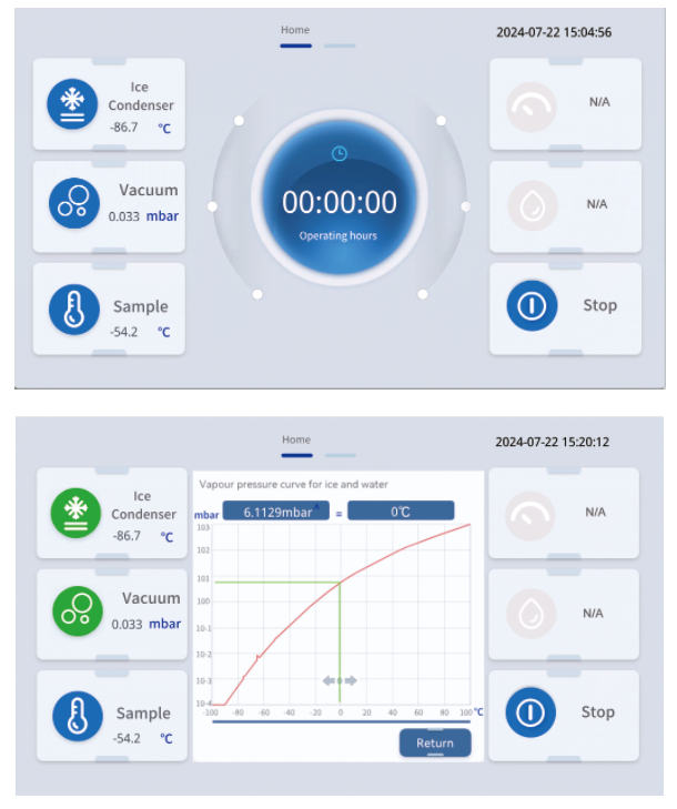 7” touch screen controller, installed with LyoBasic operating system, assisting users to simlify the freeze-drying process.