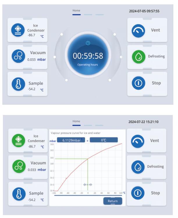 7” touch screen controller, installed with advanced LyoSmart operating system, assisting users to optimize the freeze-drying process.