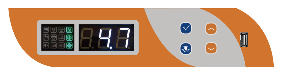 Microprocessor electronic controller for PharmaSafe series medical refrigerators, fitted with dual LED screen to display inner chamber temperature and key working conditions. Advanced dual sensor control system for accurate temperature control.